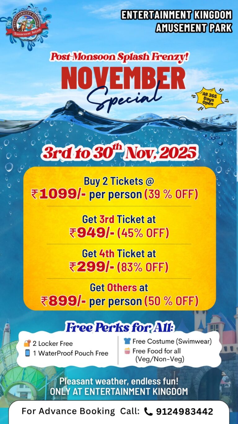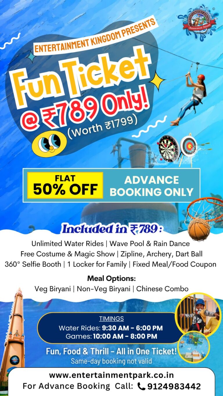 Included in @789/- Unlimited Water Rides | Wave Pool & Rain Dance | Free Costume & Magic Show | Zipline, Archery, Dart Ball, 360 Selfie Booth | 1 Locker for Family | Fixed Meal/Food Coupon
